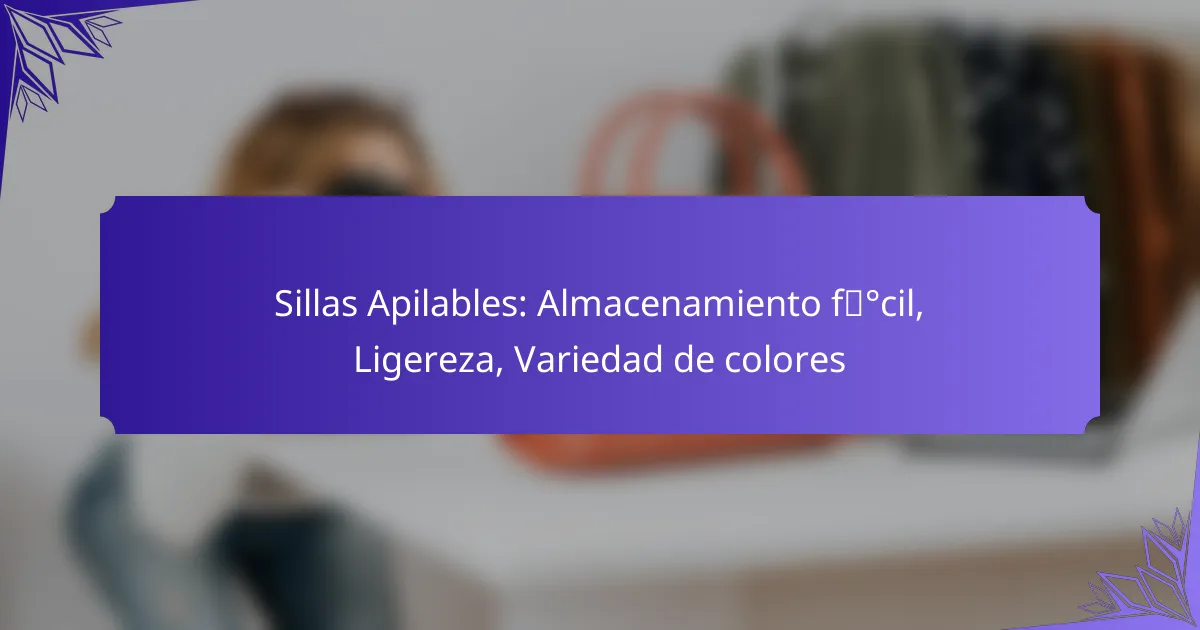 Las sillas apilables son muebles diseñados para ser apilados una sobre otra, lo que facilita su almacenamiento y transporte. Sus beneficios incluyen la optimización del espacio y la ligereza, lo que las hace ideales para diversos entornos.